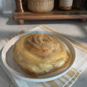 - Room Temperature – Cover the cinnamon roll tightly with plastic wrap or foil and store at room temp for up to 2 days. For the best texture, rewarm before serving.